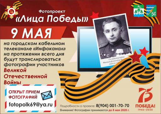 На протяжении всего дня 9 мая портреты воевавших родственников конаковцев покажут по телевизору на городском кабельном канале «Инфоканал». Фотографии будут сопровождаться музыкой военных лет, песнями о войне.