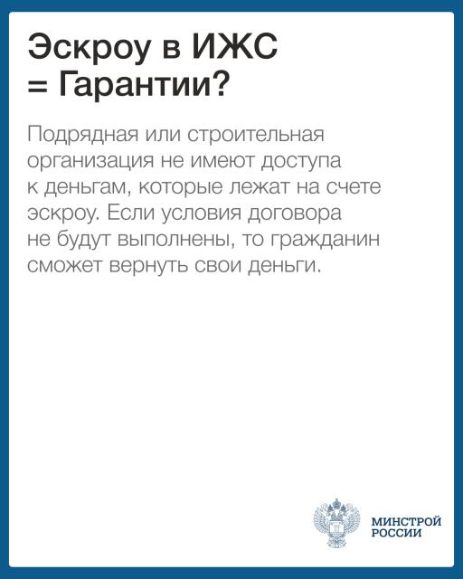 Федеральным законом от 22.07.2024 № 186-ФЗ «О строительстве жилых домов по договорам строительного подряда с использованием счетов эскроу», установлен механизм применения счетов эскроу при строительстве жилых домов по договорам строительного подряда. Министерство Тверской области по обеспечению контрольных функций в целях повышения осведомленности граждан об установлении механизма предлагает ознакомиться вас с информационными материалами на эту тематику, подготовленные Минстроем России.