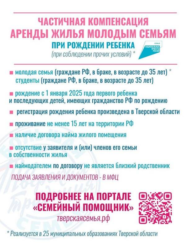 Информация о новых мерах размещена и постоянно обновляется на портале «Семейный помощник» (тверскаясемья.рф), в разделе «Меры социальной поддержки» - «Новые меры 2025».