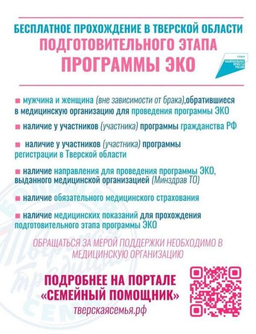 - Бесплатное прохождение в Тверской области подготовительного этапа программы ЭКО.