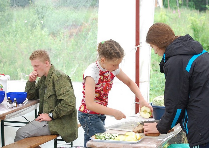 Подъем по звонку ранним утром, зарядка, пробежка на свежем воздухе, завтрак, приготовленный своими руками на открытой веранде. Далее, следуя строгому распорядку, спортивные занятия, мастер-классы. Обед и ужин тоже готовится своими силами. И никаких гаждетов… совсем никаких, даже простых мобильников – это закон.