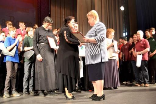 В завершение концерта глава Конаковского района Людмила Козлова тепло поблагодарила юных певцов и их наставников, вручила им памятные подарки и выразила надежду на новые встречи на конаковской земле. А затем участники проекта вместе со зрителями исполнили всеми любимую «Катюшу».