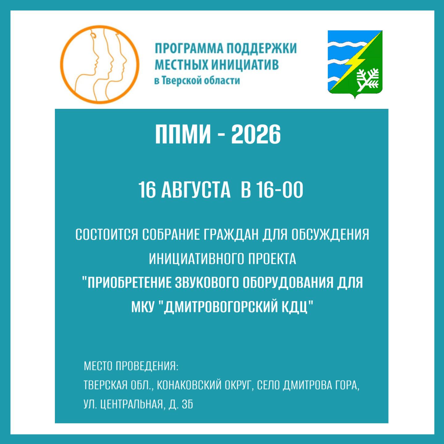 В Администрацию Конаковского муниципального округа внесен инициативный проект для участия в конкурсном отборе для получения финансовой поддержки из бюджета Тверской области: «Приобретение звукового оборудования для МКУ «Дмитровогорский КДЦ», расположенного по адресу: Тверская область, Конаковский муниципальный округ, с. Дмитрова Гора, ул. Центральная, д. 3Б»